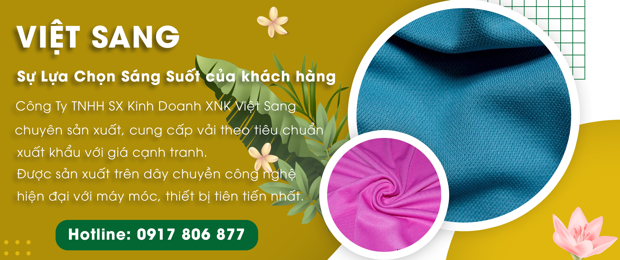 Lấy phương châm “Hợp tác để cùng thành công” làm kim chỉ nam, công ty Việt Sang không ngừng cố gắng và nỗ lực để mang đến cho khách hàng những sản phẩm chất lượng nhất. Nếu có nhu cầu mua hay gia công các sản phẩm vải sợi của chúng tôi hay còn những vấn đề thắc mắc cần được hỗ trợ tư vấn thêm thông tin, bạn hãy liên hệ ngay. Đội ngũ nhân viên của Việt Sang luôn sẵn sàng để đáp ứng và phục vụ cho nhu cầu của bạn mọi lúc, mọi nơi.
