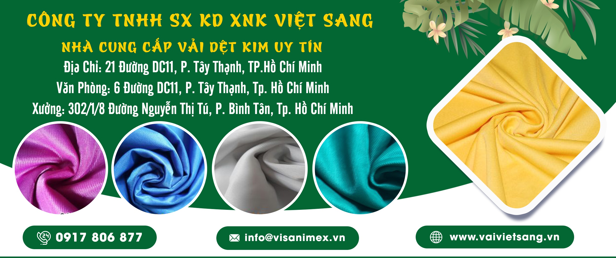 Công Ty TNHH Sản Xuất Kinh Doanh Xuất Nhập Khẩu Việt Sang chúng tôi là một trong những đơn vị uy tín chuyên sản xuất và cung cấp vải sợi để phục vụ cho các công ty may mặc, dày da, dệt nhuộm trong nước cũng như quốc tế suốt hơn 14 năm qua. Với đội ngũ nhân viên chuyên nghiệp, giàu kinh nghiệm, làm việc nhiệt tình cùng sự hỗ trợ của các trang thiết bị, máy móc hiện đại. Công ty Việt Sang luôn mang đến cho khách hàng những sản phẩm vải sợi đa dạng về mẫu mã, kích thước, màu sắc, độ bền cao, không bị phai màu với số lượng lớn nhỏ khác nhau chỉ trong thời gian ngắn với giá rẻ!